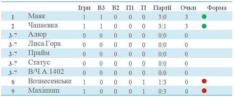 Наступний тур відбудеться вже цієї п’ятниці. О 18:00 між собою зустрінуться аутсайдери першого ігрового дня – “Maximum” та “Вознесенське”. За годину гратимуть “Лиса Гора” та “В/Ч А 1402”.