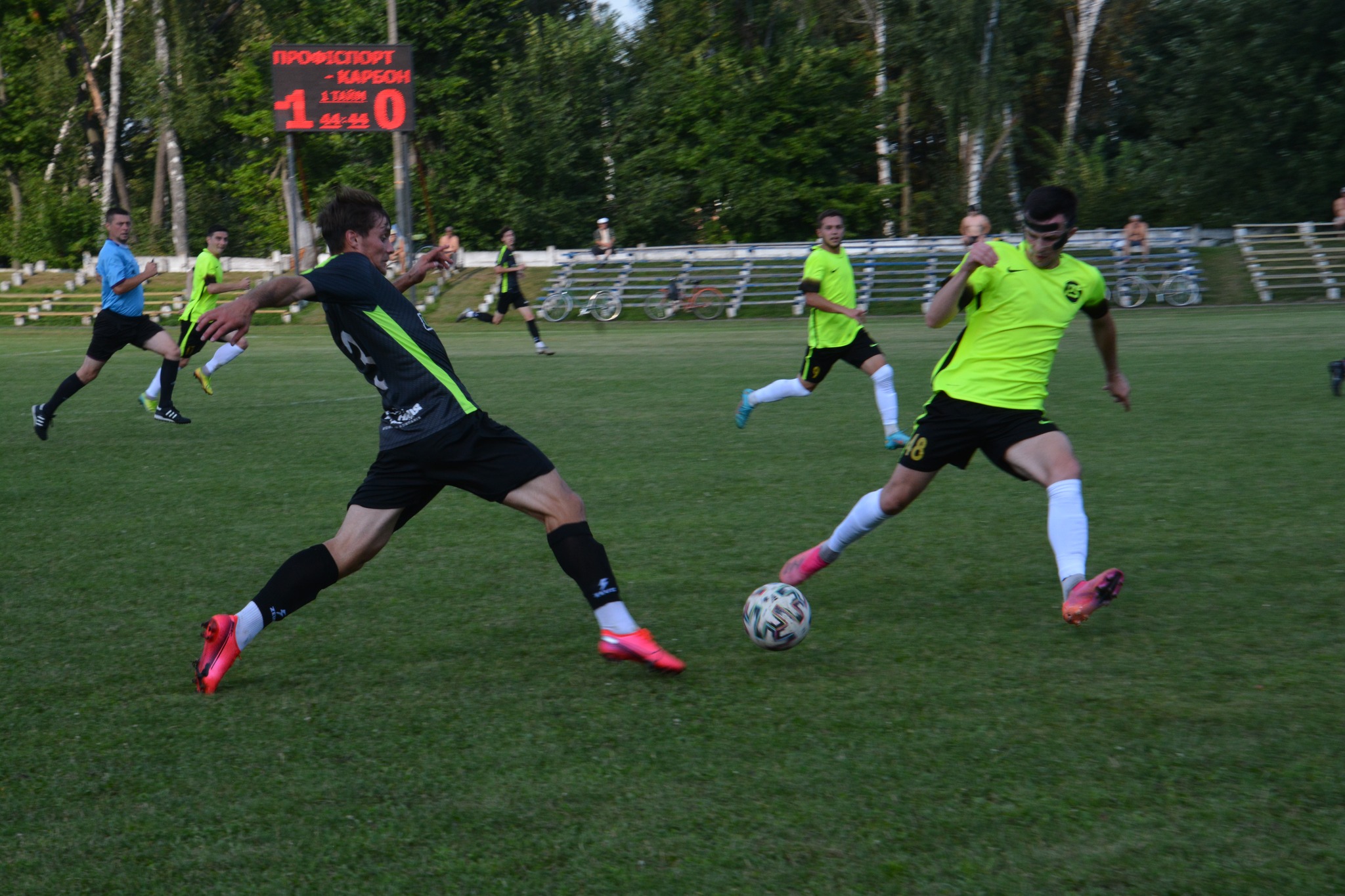 Незважаючи на чималу спеку (+42 на полі перед стартом поєдинку), розпочали команди жваво уже з перших хвилин – після нереалізованого моменту гостей, одразу ж, уже на 4-й хвилині свою команду уперед вивів гравець “Профіспорта” Ярослав Пуха. На цьому стартовий запал обох суперників трохи упав, а сама гра плавно перейшла у дуелі особистих доволі травматичних єдиноборств.